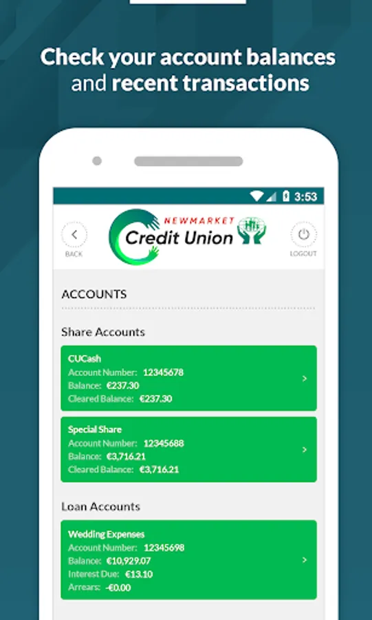 The Newmarket Credit Union App allows you to manage your Credit Union accounts 'on the go' and in a way that is convenient to you.
