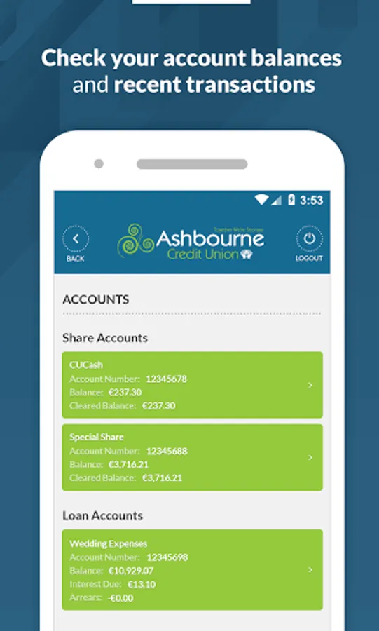 The Ashbourne Credit Union App allows you to manage your Credit Union accounts 'on the go' and in a way that is convenient to you.