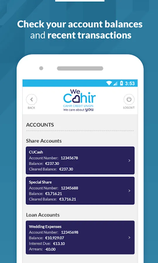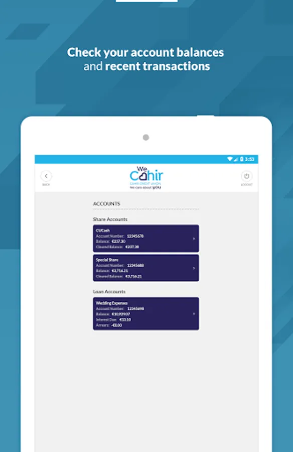 The Cahir Credit Union App allows you to manage your Credit Union accounts 'on the go' and in a way that is convenient to you.