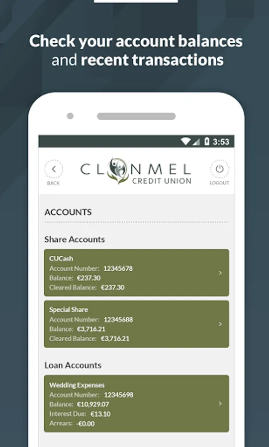 The Clonmel Credit Union App allows you to manage your Credit Union accounts 'on the go' and in a way that is convenient to you.