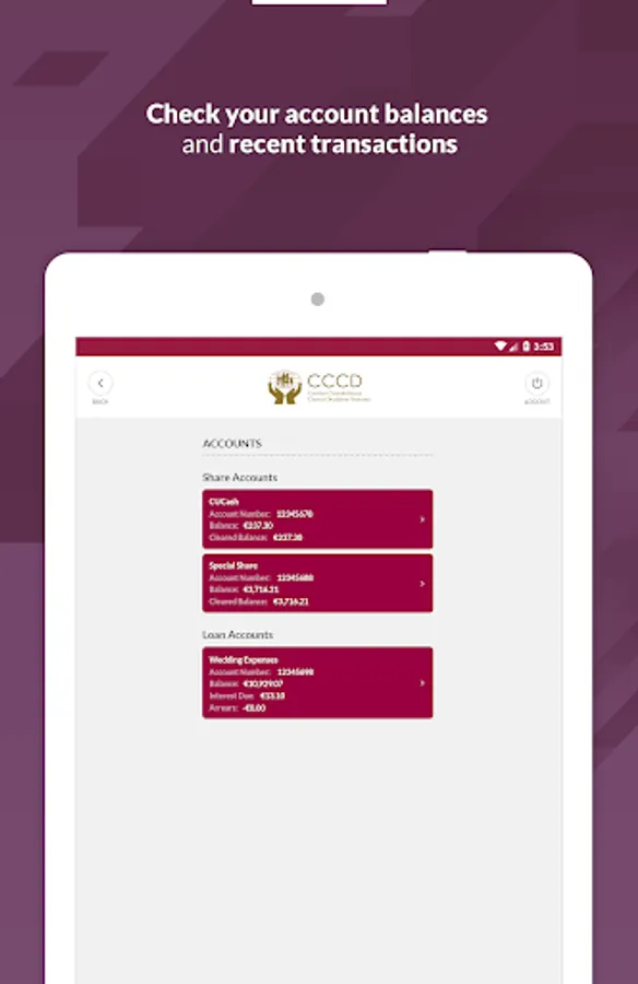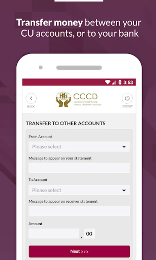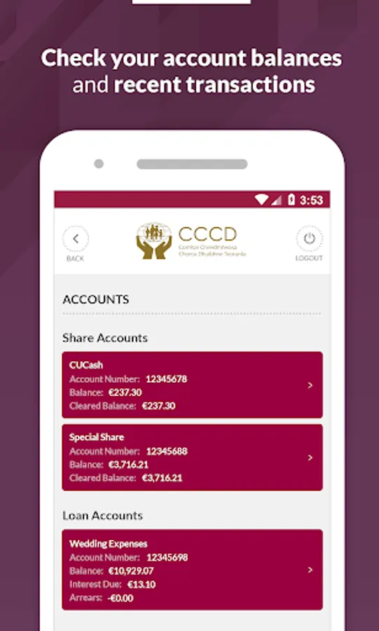 The first time you use the App, you will be asked to review and accept Dingle CU's Terms and Conditions which can also be viewed on www.cccdteo.com.