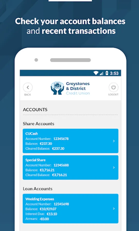 The Greystones Credit Union App allows you to manage your Credit Union accounts 'on the go' and in a way that is convenient to you.