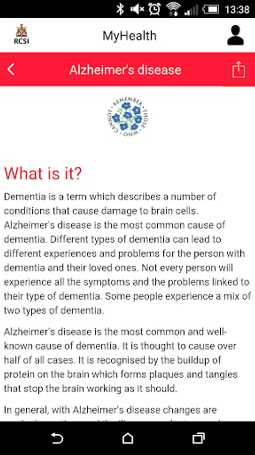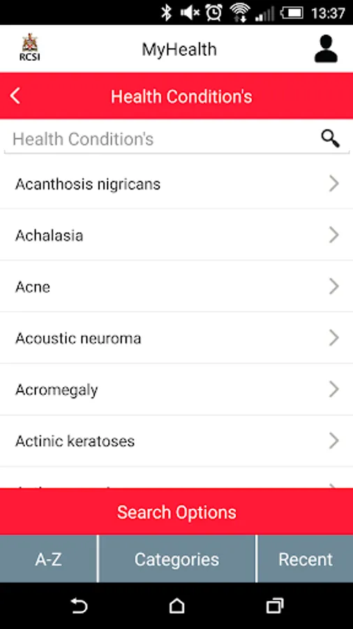 The RCSI MyHealth App is dedicated to providing easy access to credible health information. More than 600 medical conditions are listed as well as providing contact information for some of Ireland’s leading charity organisations.