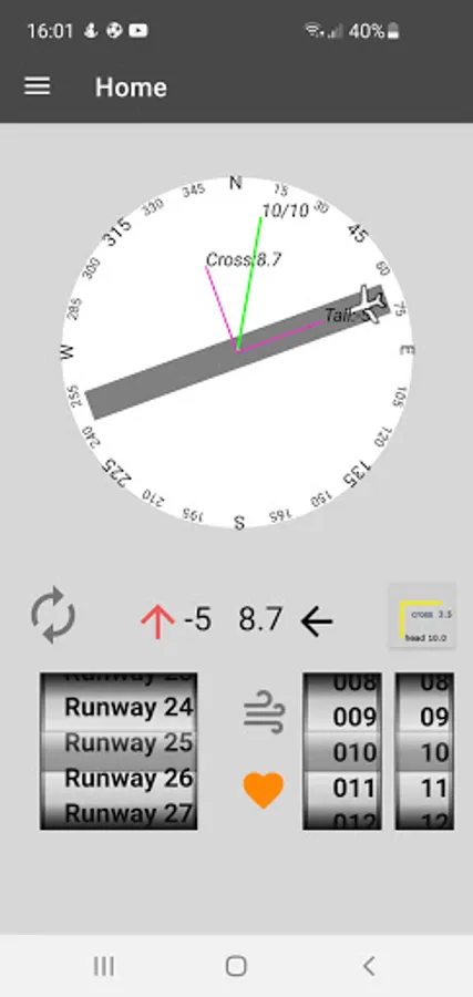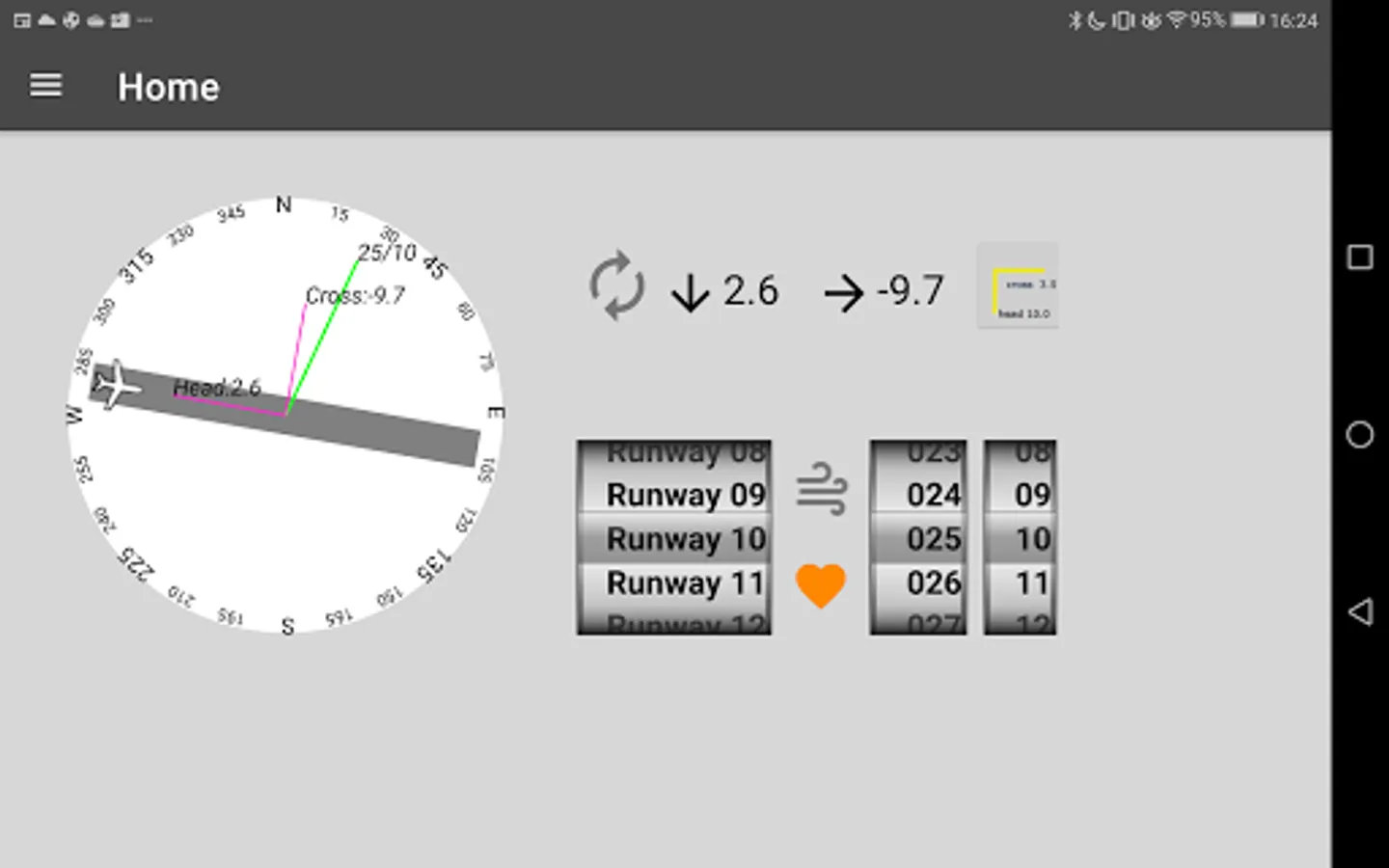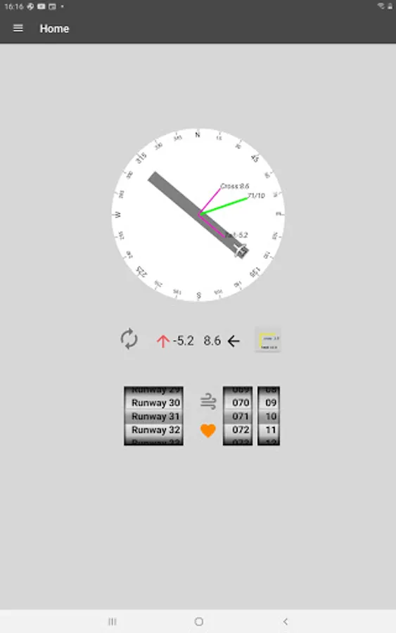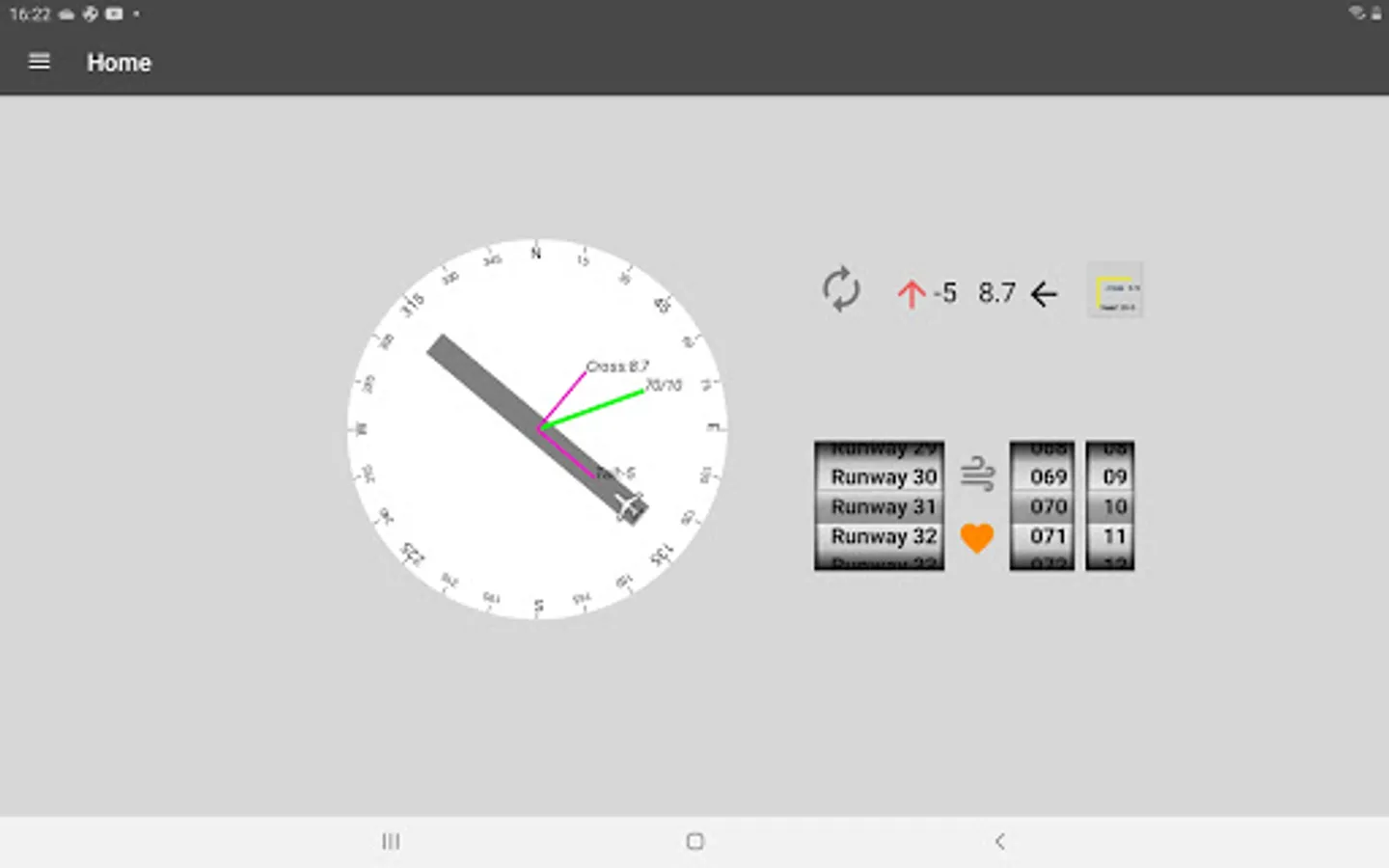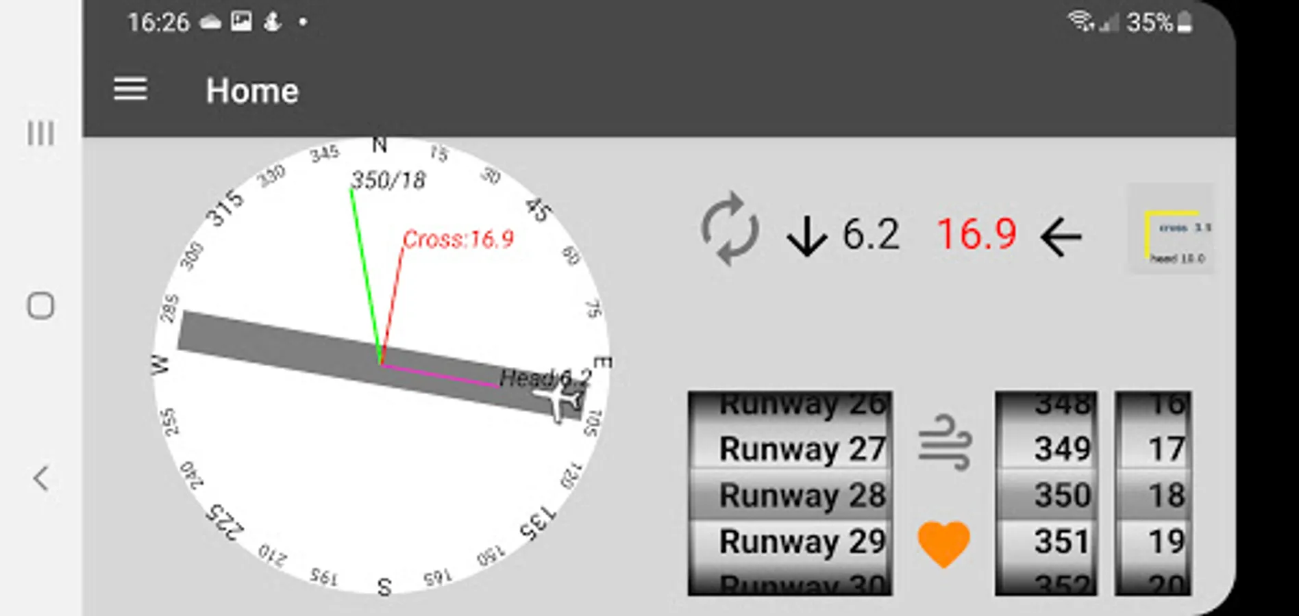 This is a wind component app for pilots. It shows wind components for crosswinds, headwinds and tailwinds.