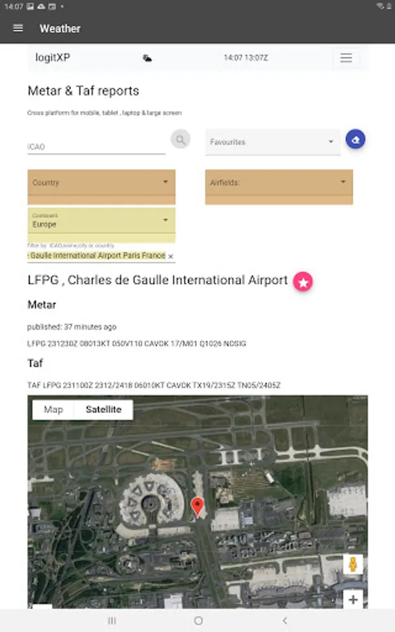 Access Mater and TAF reports by ICAO from the logitxp.cloud web page.