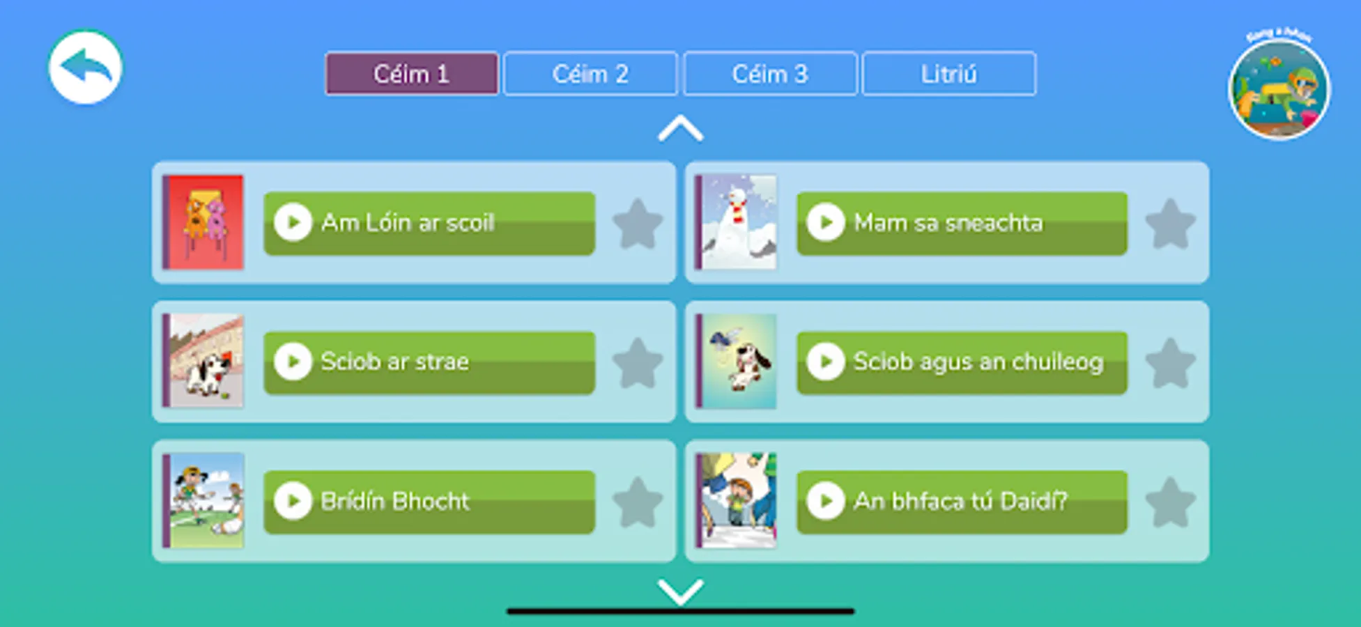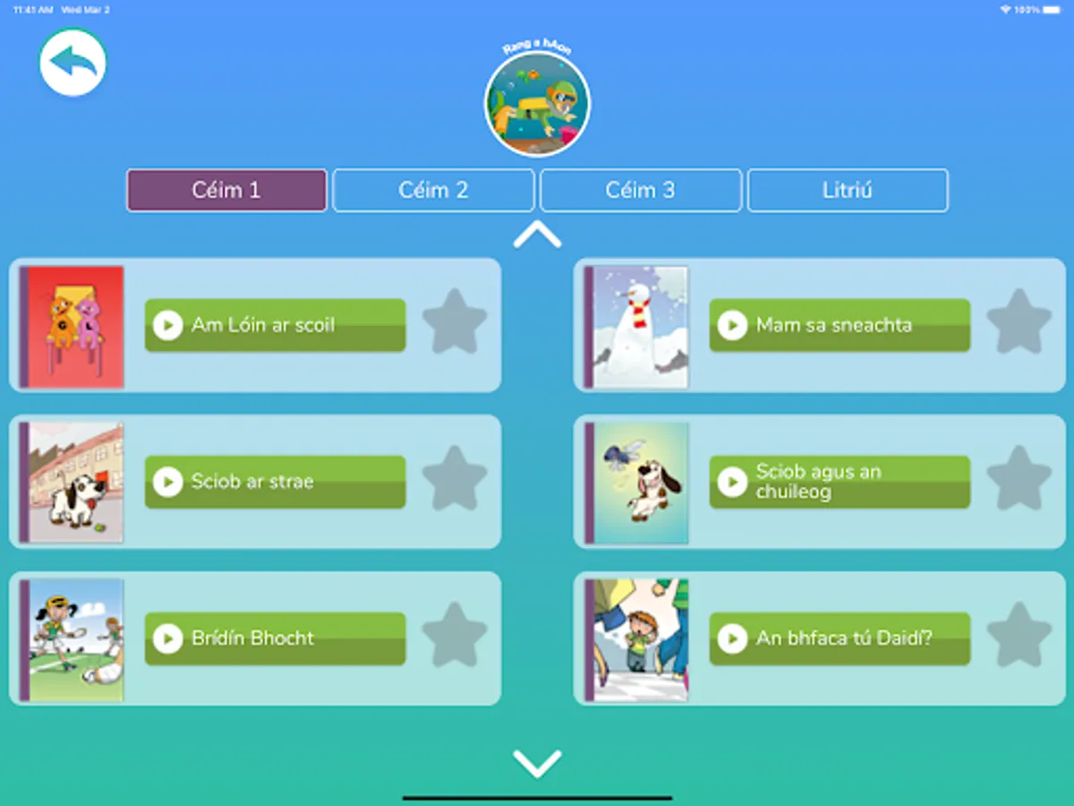 This app is based on the programme and digital activities of the primary school project, Séideán Sí. The innovative material was initially created to enable pupils to develop the language skills they have learned. It is based on the communicative approach and integrates within it the three strands that are specifically highlighted in the new primary curriculum, namely, oral language, reading and writing. This version of the app is aimed at pupils in First and Second Class.