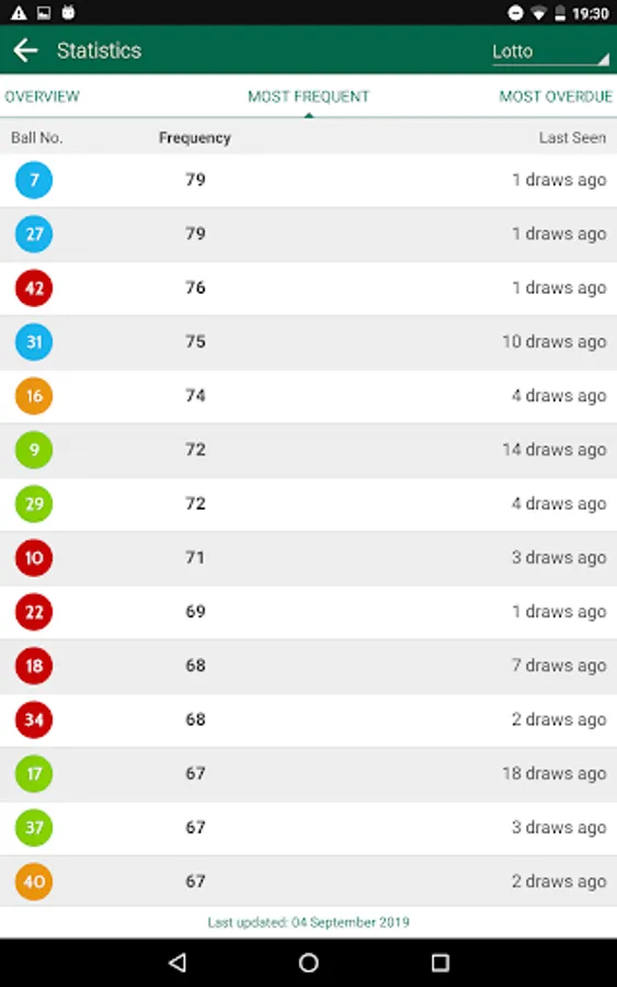 ★ STATISTICS - Ever wonder what numbers appear the most? Or which numbers haven't appeared in a long time? Now you can find out with our statistics for each game that shows you how many times each number has been drawn as well as which ones are overdue.