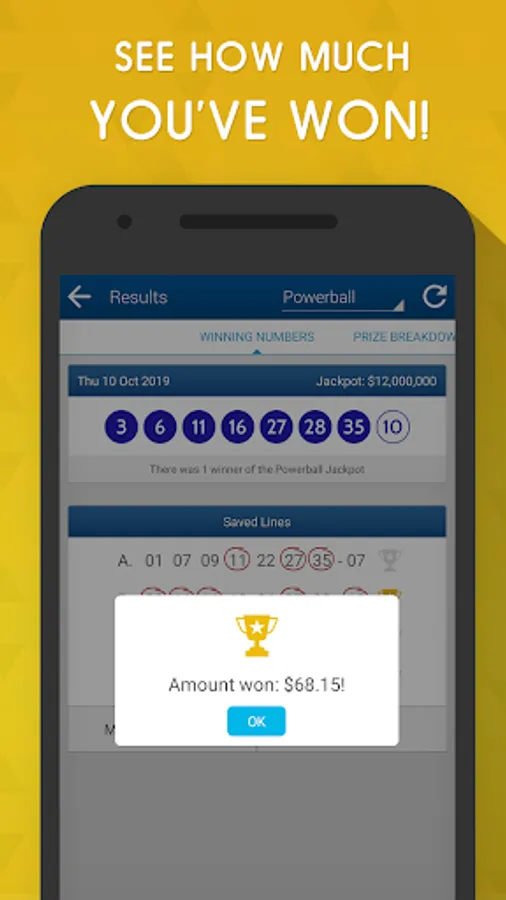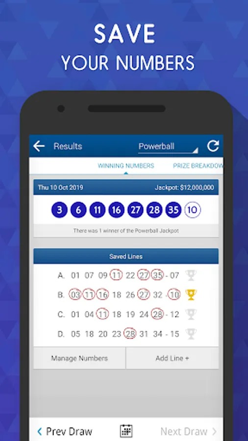 Save your numbers to have them checked automatically every time there's a new draw. You can save up to 50 lines at once with the PRO version of this app! (very handy if you run a lotto syndicate). Matching numbers are circled and winning lines are indicated with a golden trophy so you can quickly see what lines are winners.