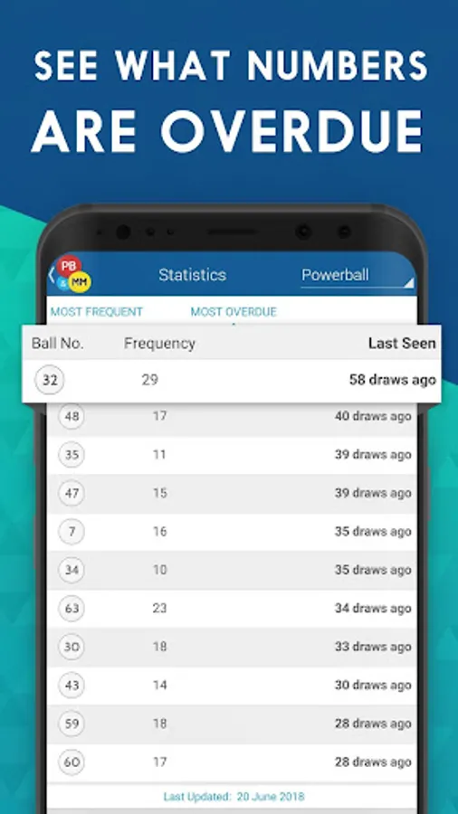 ★ Statistics: Find out the most frequent and most overdue Powerball and Mega Million numbers to help you pick what numbers to play.