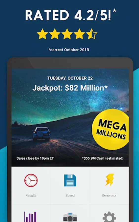 - Powerball and Mega Million tickets cannot be purchased from within the app, it is for informational purposes only.