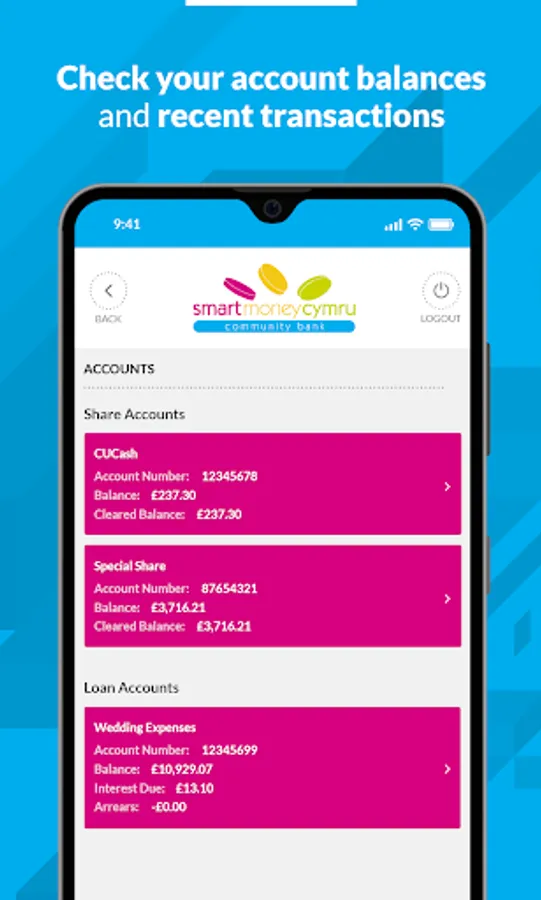 The Smart Money Cymru Community Bank App allows you to manage your Credit Union accounts 'on the go' and in a way that is convenient to you.
