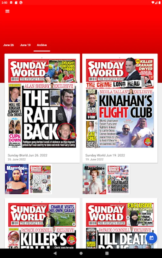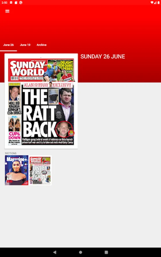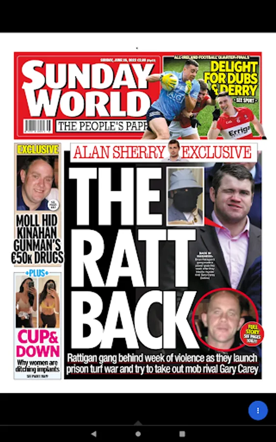 The Sunday World is the home of fearless crime reporting, stunning exclusives, investigations, exposes and award-winning journalists including investigations editor, Nicola Tallant. Expert Irish sports reporting, household names, including Father Brian Darcy, Daniel O’Donnell and Nathan Carter. Plus, your seven-day TV guide, Magazine+.