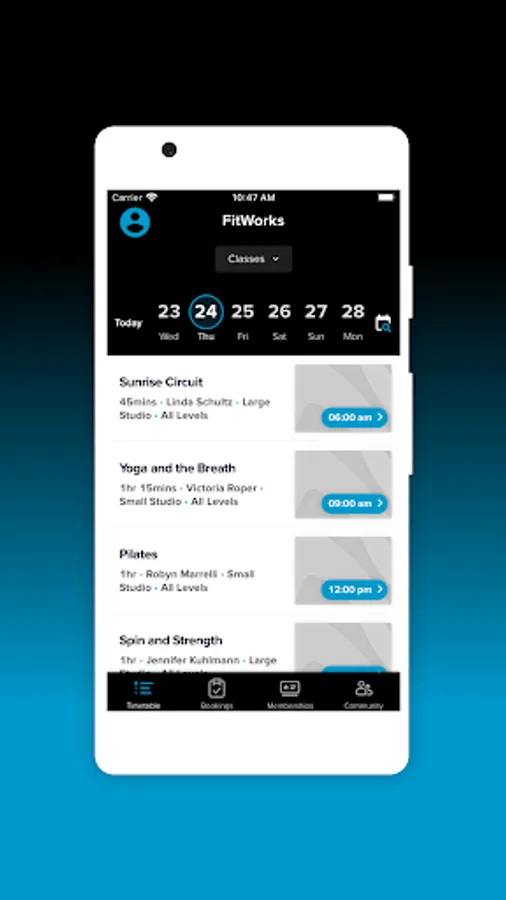 Download the BCRD FitWorks app to easily book classes and manage your fitness experience - anytime, anywhere. Make a reservation, get added to a wait list, purchase class packages, check your profile and membership status, keep up to date with the latest products and services, and more – all from your device.