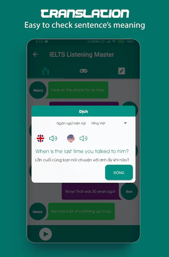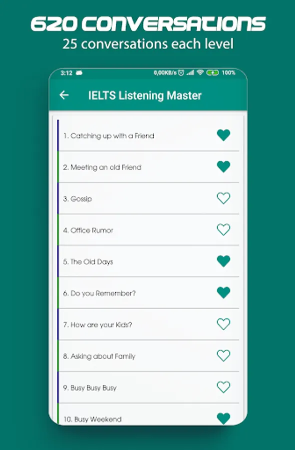 The Practice English Ielts listening software offers more than 600 types of dialogues divided by categories and Levels so you can find materials and vocabulary to prepare for the IELTS exam.