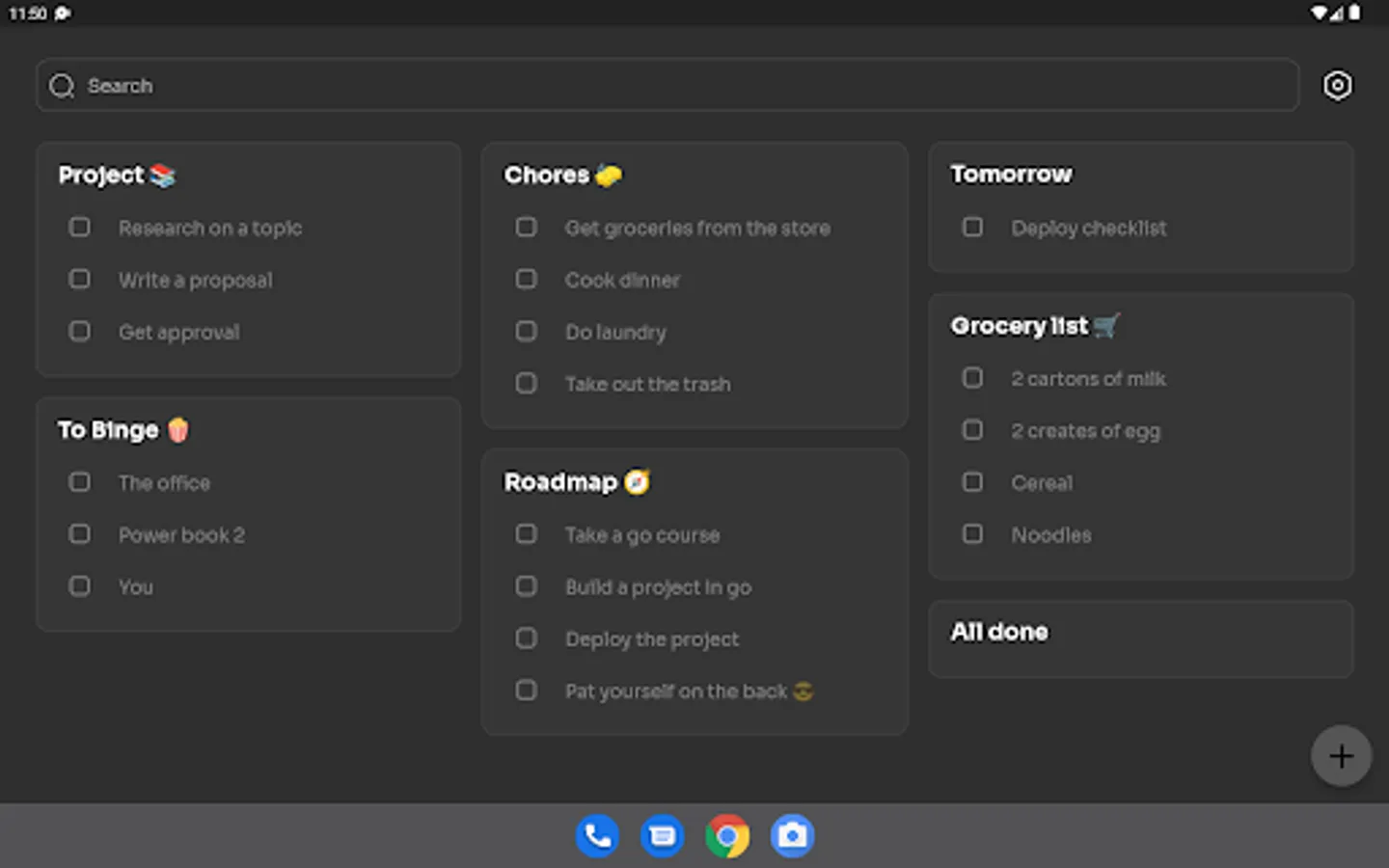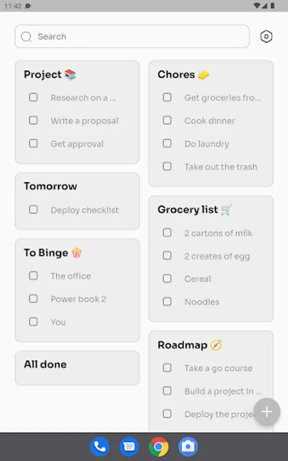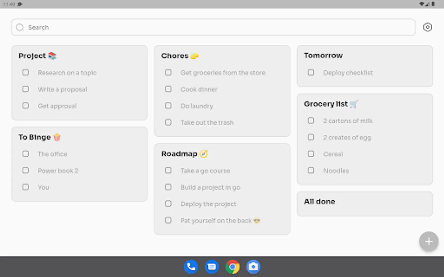With Checklist you get to create a list - check stuff off - get things done. Available on multiple platforms (Android, IOS, MacOS, Windows, Linux, Web).