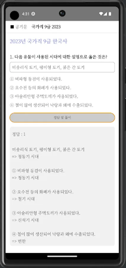 4. Including the 9th grade Korean history problem in 2023.
