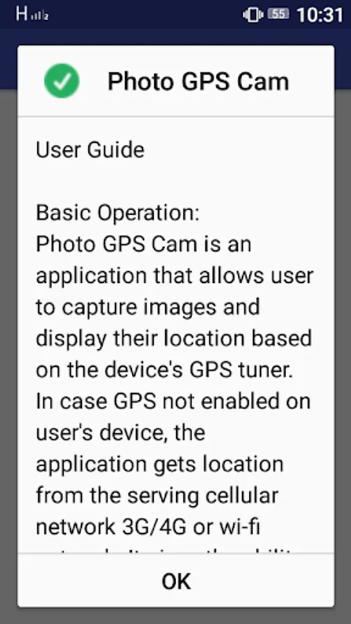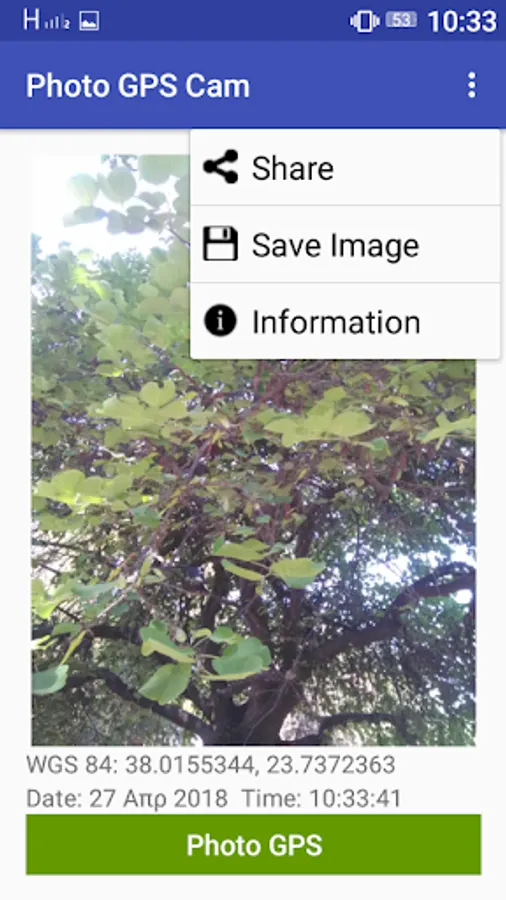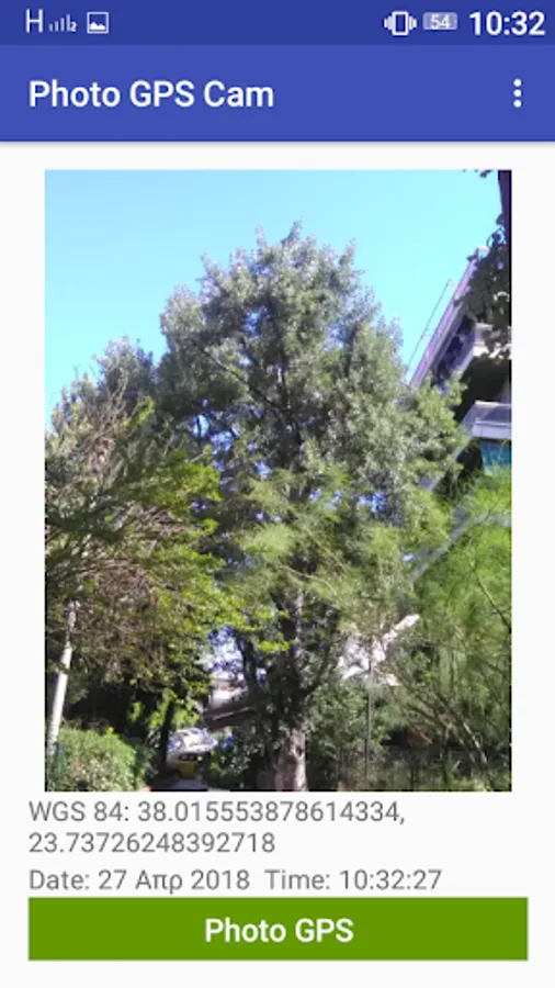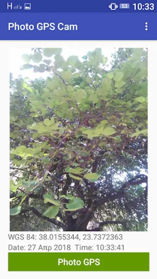 Photo GPS Cam is an application that allows user to easily capture images and display their location based on the device's GPS tuner. It gives the ability to the user to save these images with GPS data for later use or share them directly though the mobile's available social media (Gmail, Facebook, Twitter, etc.).