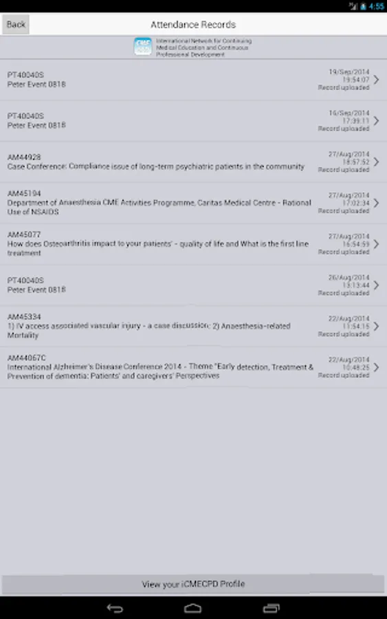 The iCMECPD app allows Fellows of Hong Kong Academy of Medicine (HKAM) to record attendance easily for CME/CPD. It also allows HKAM Fellows to view their CME/CPD profiles. During the activity, the organiser will post a QR code at the venue for HKAM Fellows to scan and capture the attendance. The attendance records will be uploaded to the iCMECPD system and confirmed by organisers accordingly.