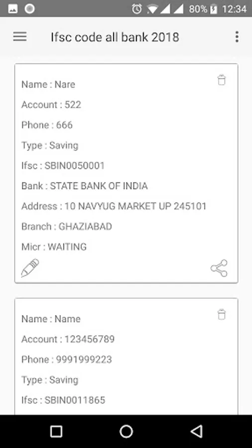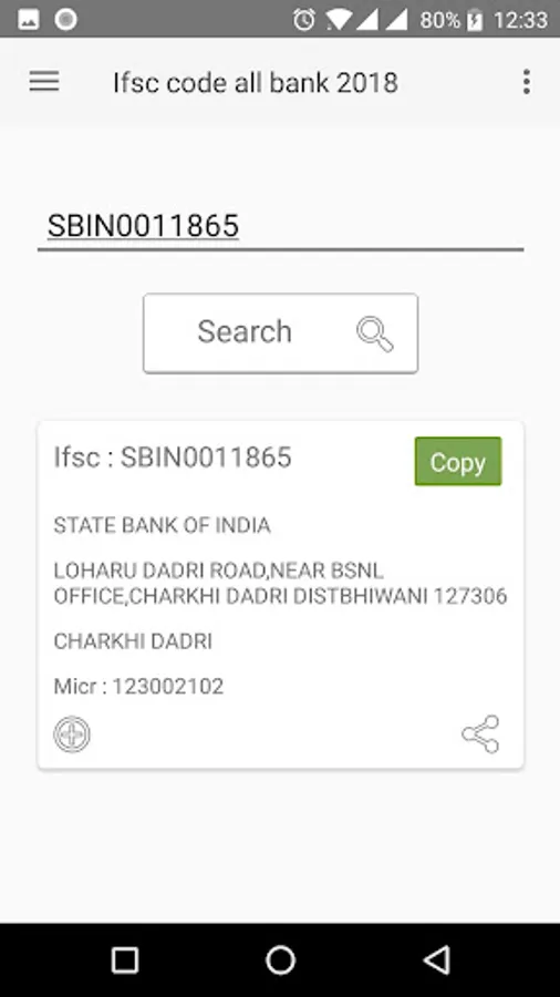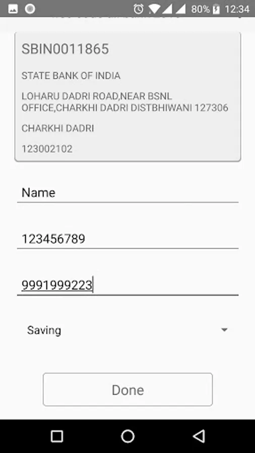 Or user can save full bank deatils includeing ifsc and micr code, branch address along with some user bank account name and bank account number. This information can be accessed any time without an internet connection.