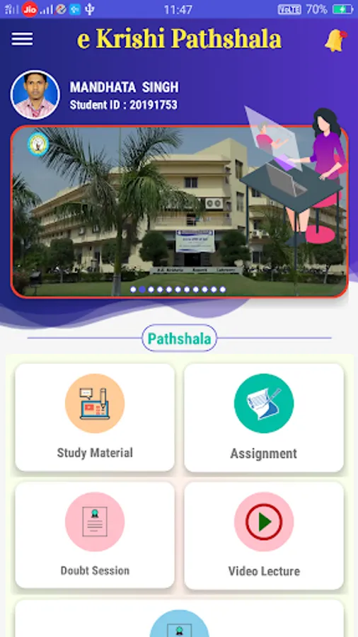 The e-Krishi Pathshala App is an initiative by the Hon'ble Vice-Chancellor to improve the mobile experience of all IGKV students, Staffs and faculty. The following feature for students and faculty are available