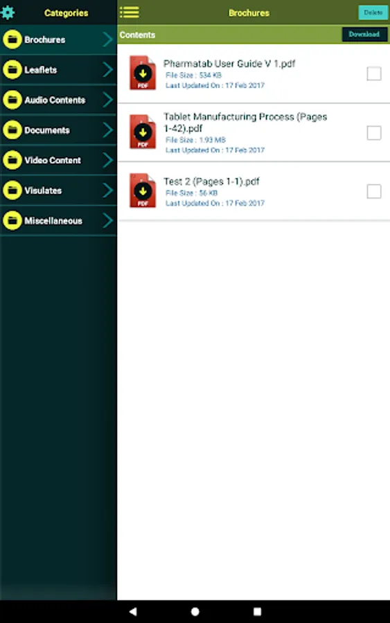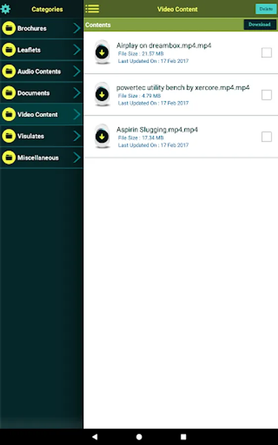 • User can login and download content when internet is available, then it can be presented in offline mode anytime .