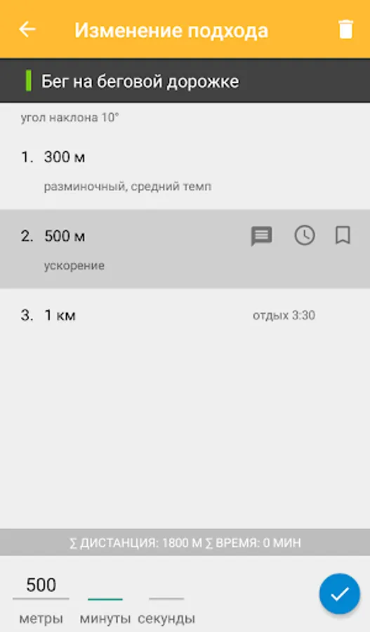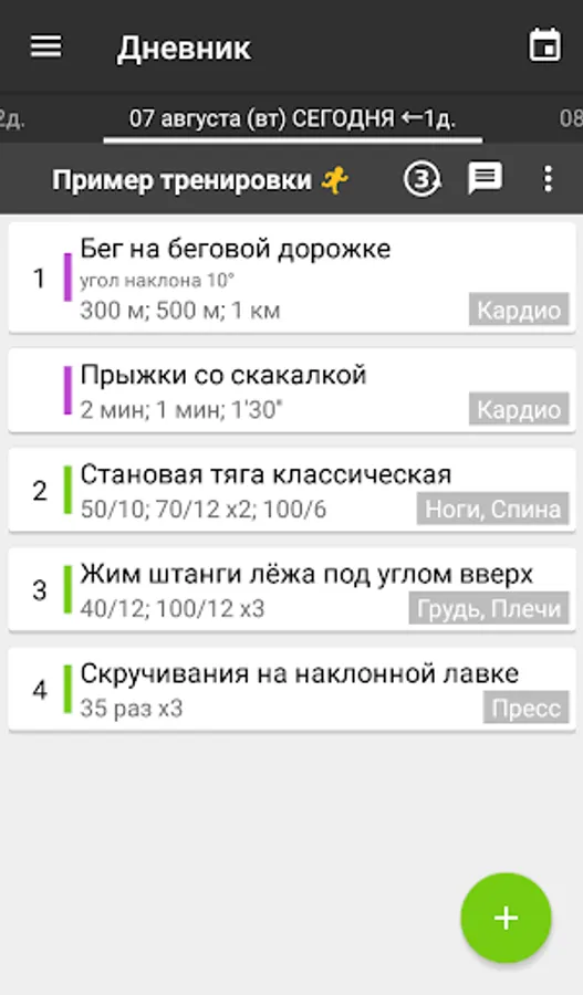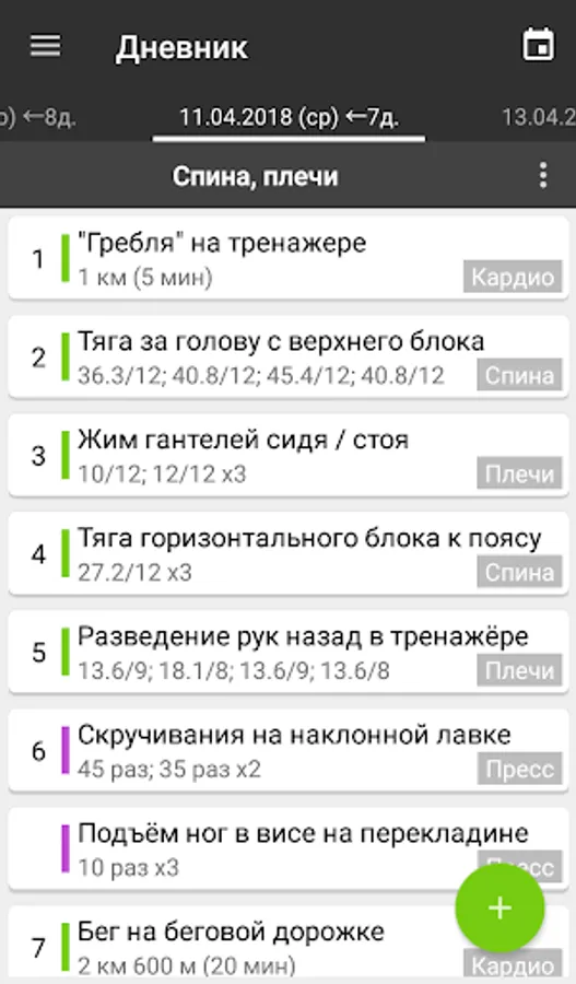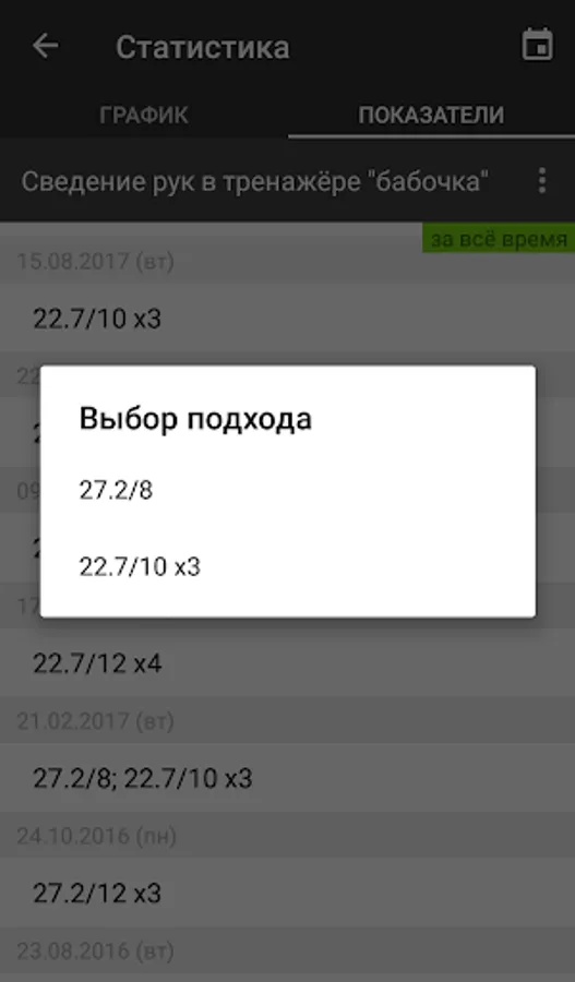 • the ability to substitute values from the history of approaches into the current workout, copy all approaches