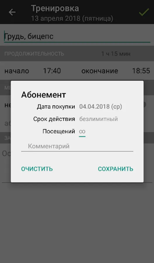 ☆ information about the current subscription to the fitness club, you can see how many lessons are left and to what date