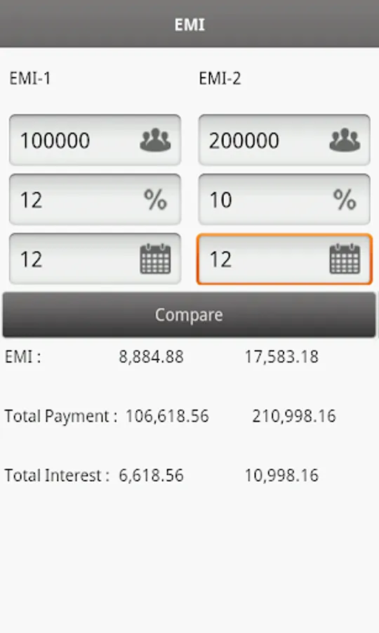 EMI Calculator is an android application which is used for calculating the monthly EMI Payment.