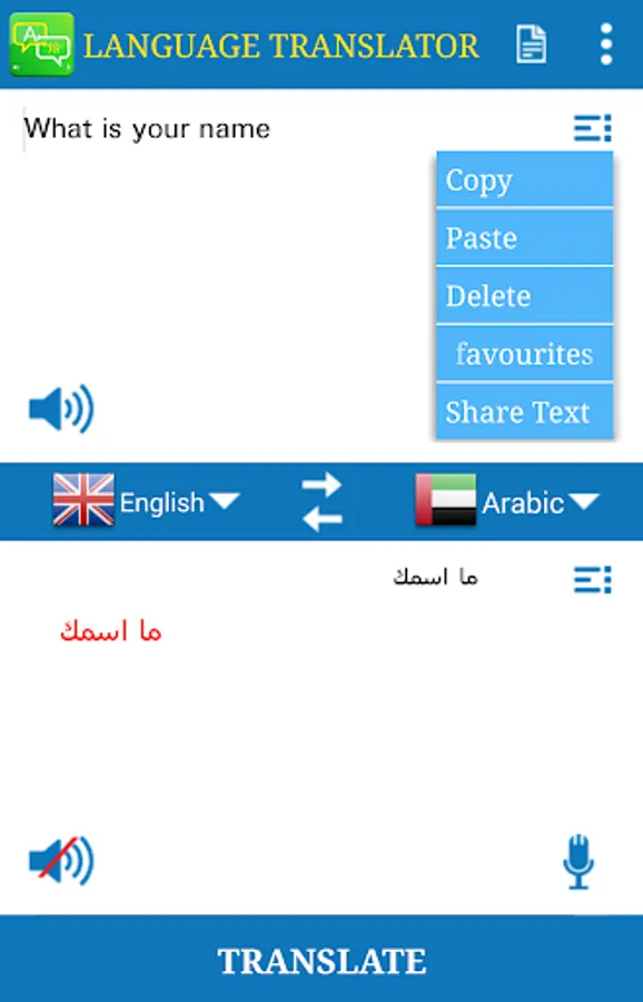 ✓ You don't have to type the language always, input the text using speech ( Voice recognition )