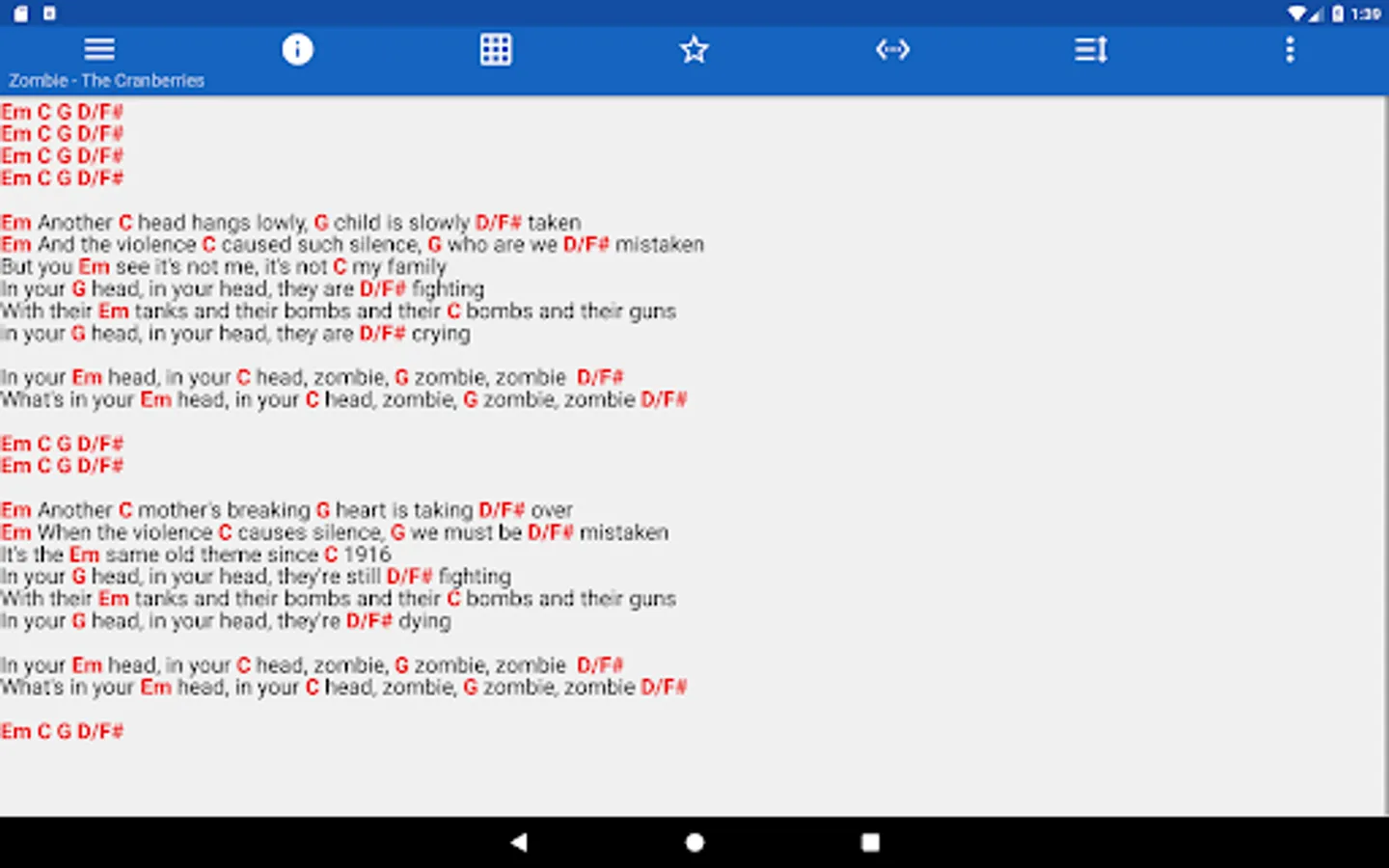 Songbook is a song lyrics viewer with chords to play on guitar, piano and sing.