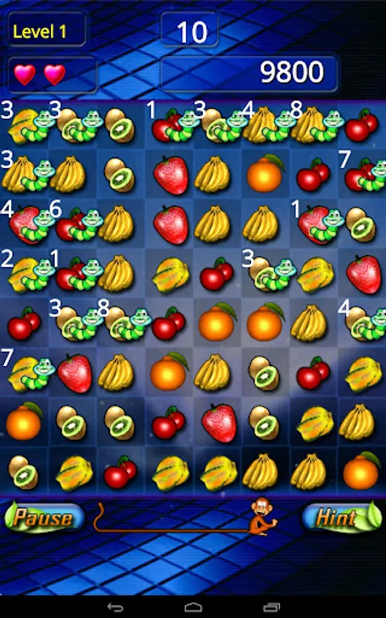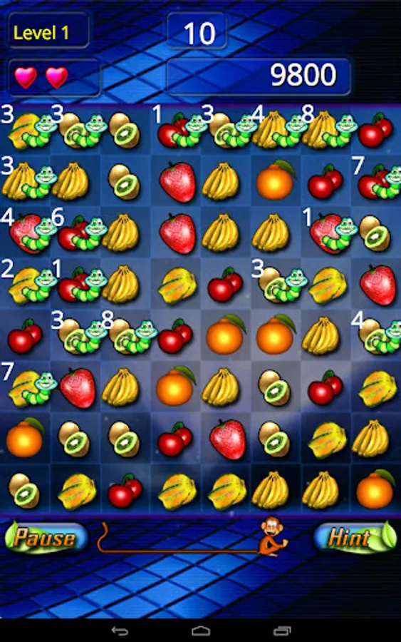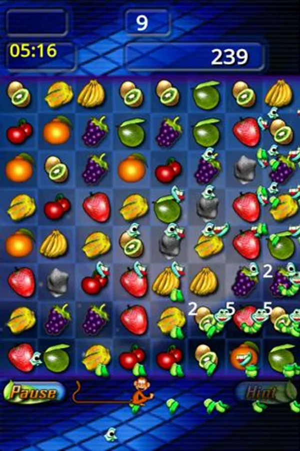 - Worms! Beware of them. Clear them before the moveout counter in each fruit infected with them reaches zero, or else it will spread to your adjacent fruits.