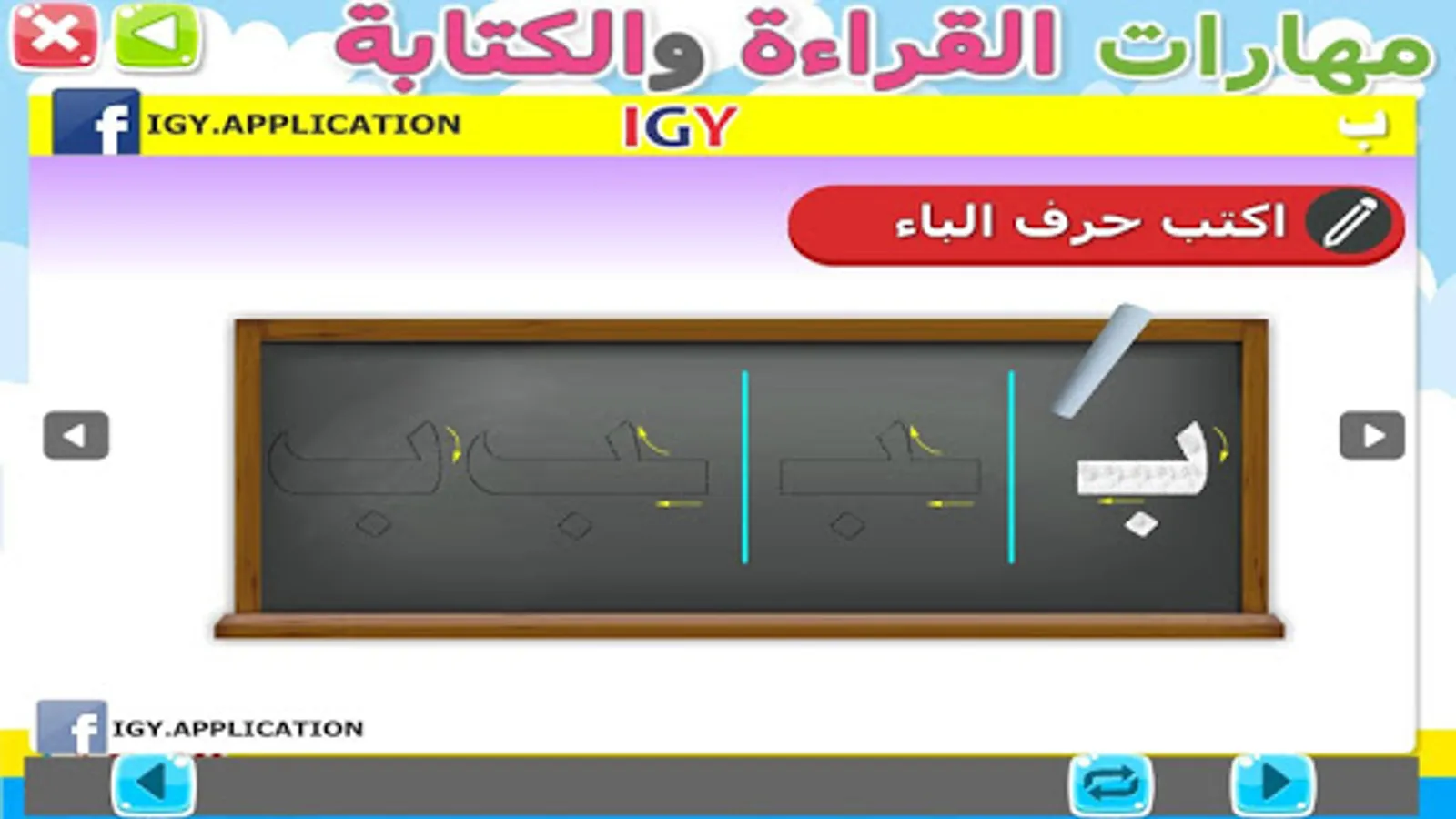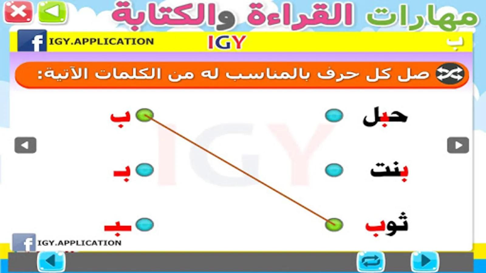 The application features an easy-to-use and appealing interface for children. It includes a collection of interactive images and sounds that help children recognize Arabic letters and pronounce them correctly. The application also includes interactive exercises that directly practice reading and writing skills.