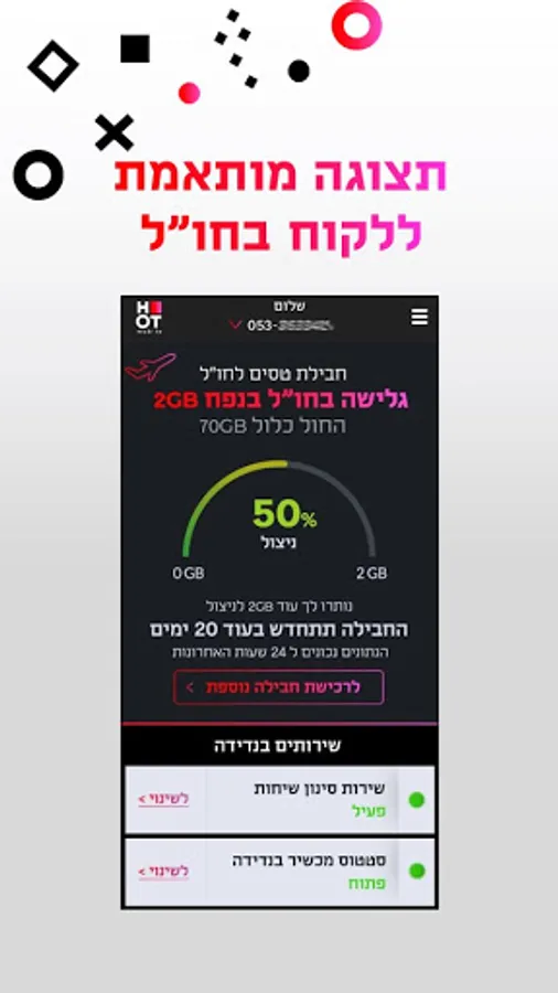 • Connection to the world of HOT mobile's leading applications