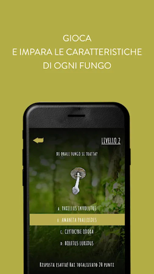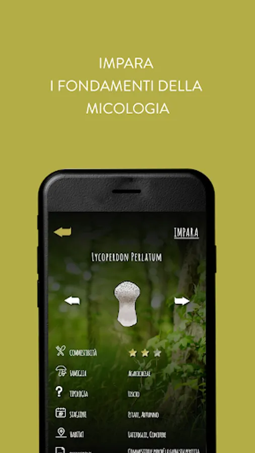 The game intended for a very wide audience, from children to adults, allows through the Learn section to discover the main features of each mushroom in the game archive. For each mushroom it will be possible to consult an information sheet (name, family, type, etc ..) accompanied by the relative drawing, faithful to the original, of the fungus in question. All designs have been created specifically for this game and handcrafted using digital techniques. iMico combines the ancient art of design with the most modern programming.