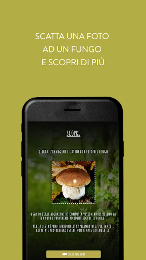 In addition to being an educational experiment, the iMico app, in fact, is also a scientific experiment of research and development, thanks to the original integration of the Computer Vision world in Mycology, through an experimental section that will allow the user after taking a picture of mushroom to identify the family to which it belongs (with relative probability of correctness).