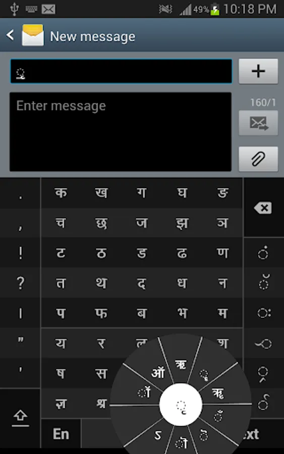 In Devanagari, we frequently need to type a combination of a consonant (ध) and a matra (ो) like ध + ो = धो. When you touch a consonant, a chakra with combination of consonants and 10 frequent matras pops up (धा, धि, धी, धु, धू, धे, धै, धो...). The chakra gives a preview of the possible character combinations. To select a combination, you slide the stylus or finger towards it.