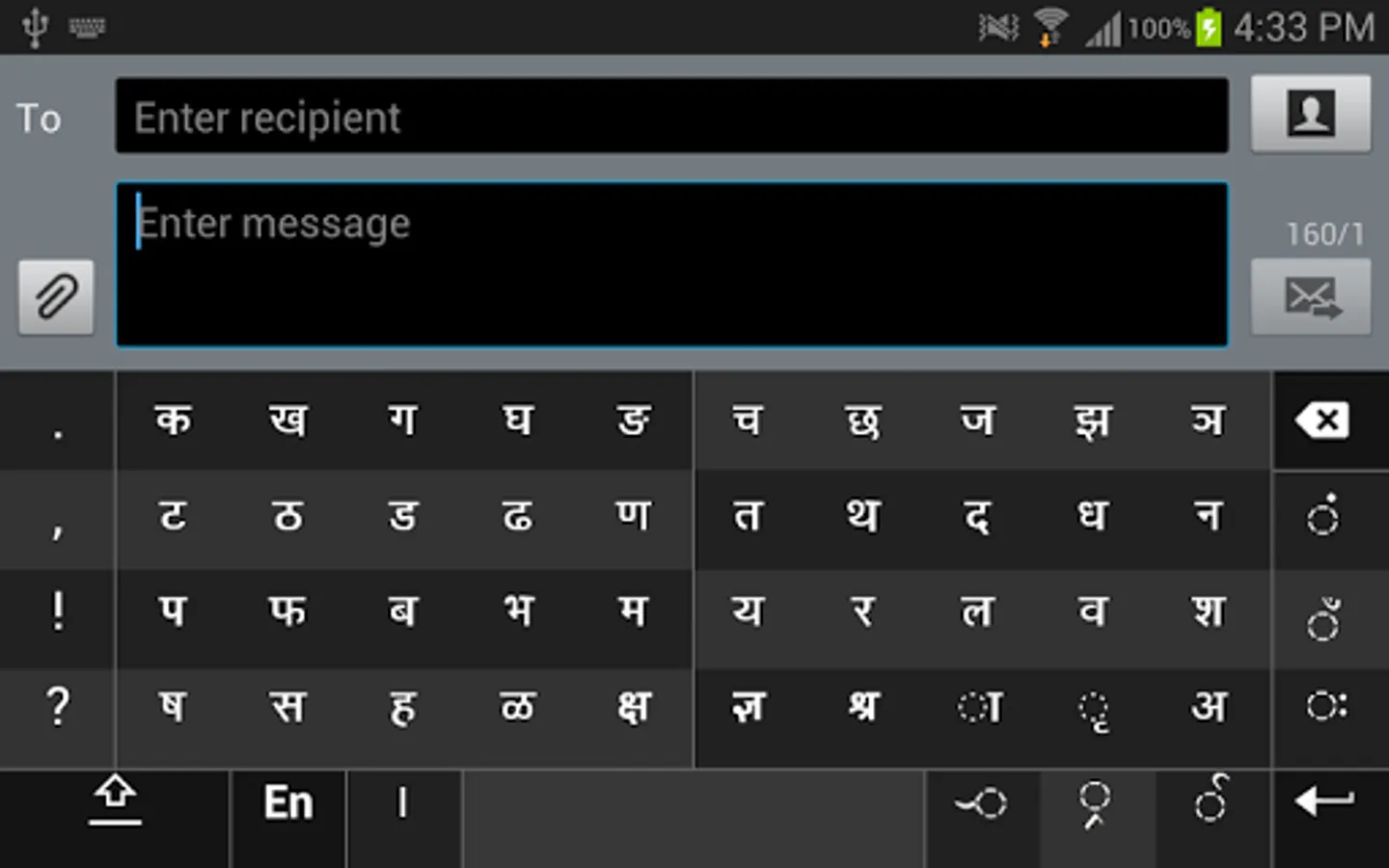 NOTE: Swarachakra is designed for Android 4.0 (ICS) onwards. It does not work right now on older versions because they do not have Unicode support.