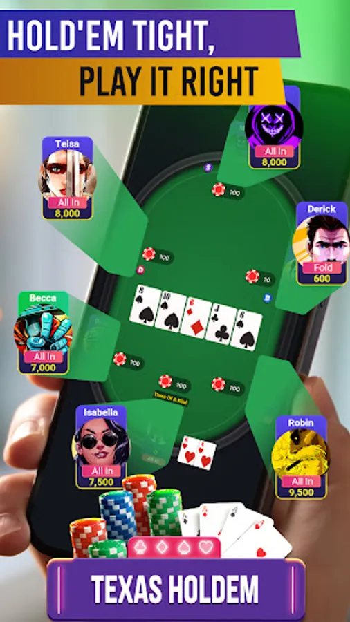 There are 4 modes for you to play in Poker - Omaha, Sit N Go, All-In or Fold and Texas Hold’em.