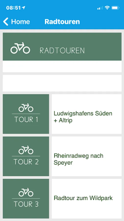 The app offers you information about shopping, eating & drinking, staying overnight, services, events, culture & sights, impressions & bike tours.