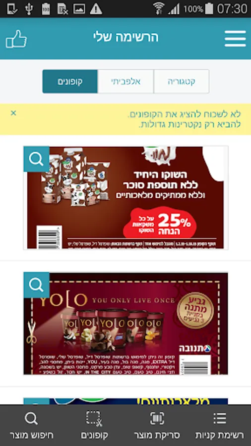 • להנות מריכוז קופונים ישירות באפליקציה. רק מציגים לקופאית ומקבלים את ההנחה.