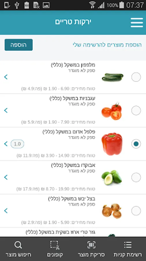 • לסרוק ברקודים של מוצרים בעזרת המכשיר הסלולרי ולקבל נתוני זמן אמת אודותיהם.