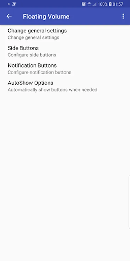 This application adds volume up and down buttons that will float above other applications giving you easy control without having to fiddle with those pesky buttons.