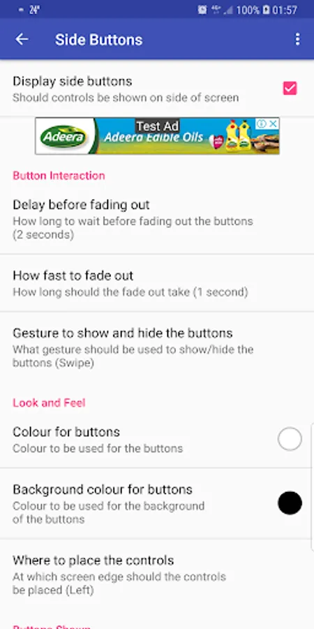 Buttons can be set fade after a few seconds but come back when touched. Simply touch the side of the screen and they will re-appear.