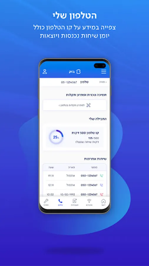 • צפייה במידע על קו הטלפון, כולל יומן שיחות נכנסות ויוצאות