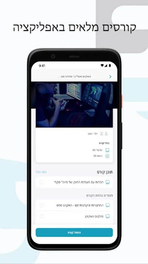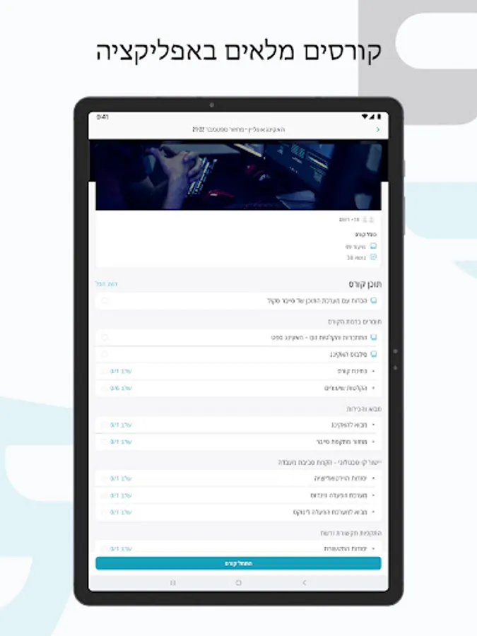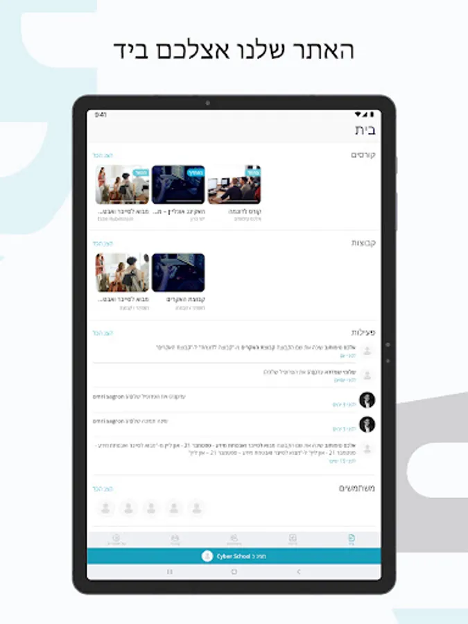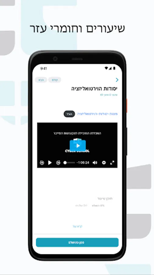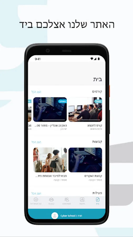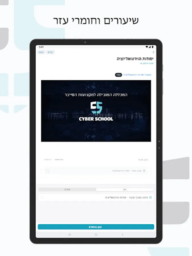 האפליקציה מאפשרת לכם גישה לכלל הקורסים והתכנים שלכם באתר של סייבר סקול כולל שיעורים, הקלטות שיעורים , כלל התכנים הזמינים עבורכם.