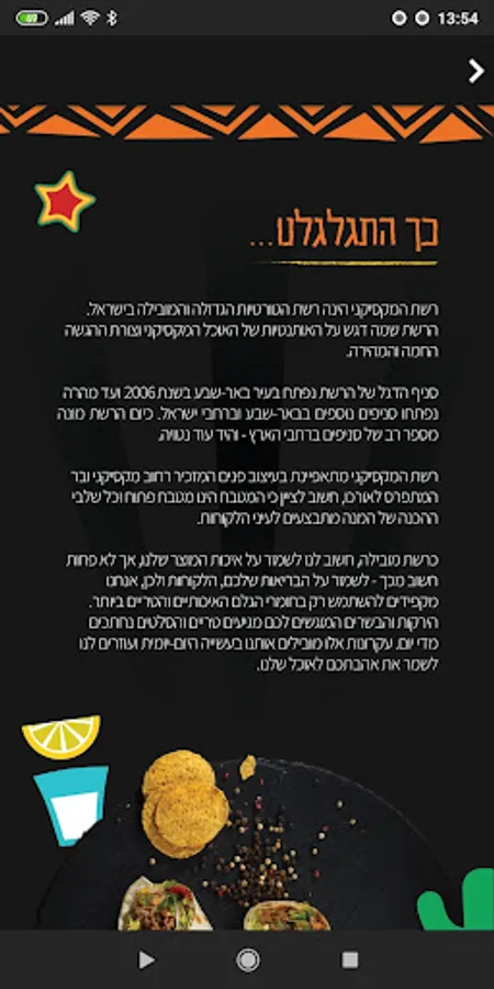 And the first original to be opened in Israel which really emphasizes the authenticity of Mexican food and the warm and fast serving form.