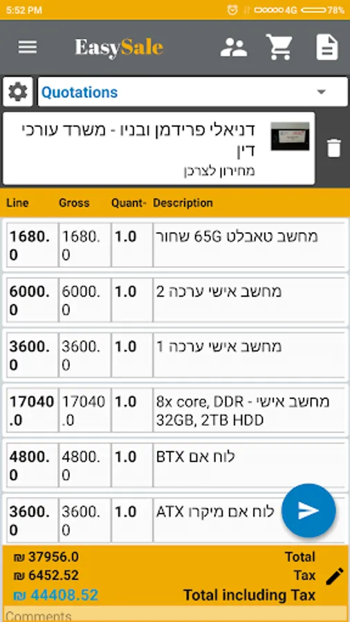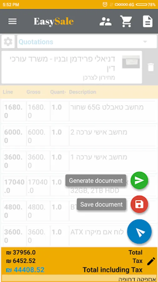 Easy Sale can manage accounts, items, create invoices, quotes, orders and much more.