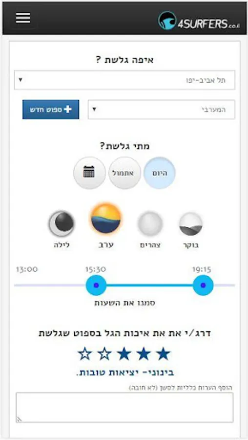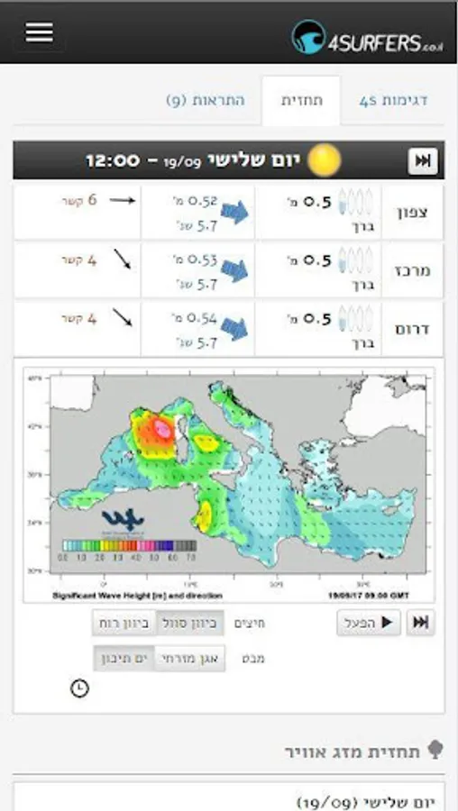 and unique analysis for the Israeli coast. The app view was designed for surfers, wind-surfers and for all sea-sport community as well.