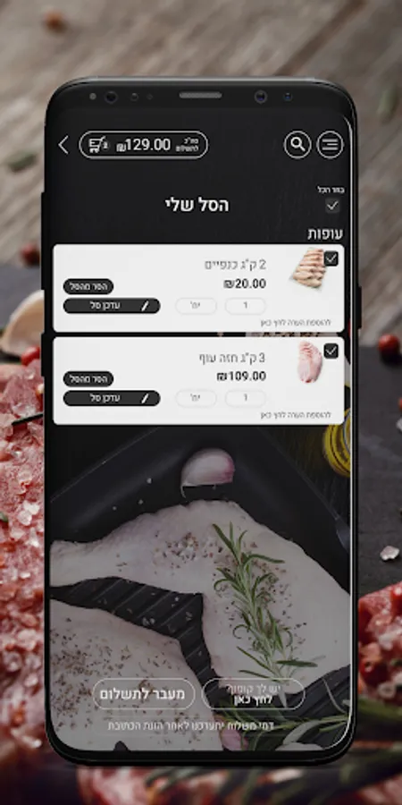 ניתן לבצע הזמנות ומשלוחים ישירות מהאפליקציה גבריאל - קצביית בוטיק כחול לבן.