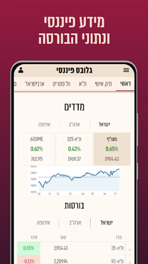 In Globes App - Israel's Business Newspaper, you will find reliable and quality content with the best analyzes, writers and opinions on a variety of topics and companies and the decision-makers that affect our lives. The app provides business financial information, stock exchange data on stocks, information on securities trading, interpretations, articles, videos, podcasts and more.